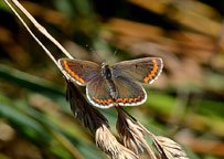 Brown Argus in flight are usually more busy and erratic than Common Blue, quite close to the ground and not far above the foliage. Often, briefly, in little groups of two or three together.