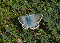 23 July 2011. Mid to late morning, bright intervals, windy. 5 Chalkhill Blues, 1 Dark Green Fritillary, few Gatekeepers, few Meadow Browns.
