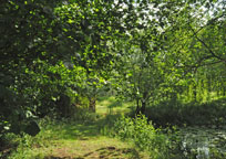 Roseland House, Great Yeldham. A paddock of about 3 acres of uncut grass, with a boggy corner. It is sheltered by a spinney