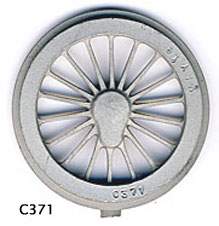 6′ 1.2″ (1860 mm) diam., 18 rect spokes; rectangular inner rim, apparent tread 4″.