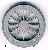 A full set consists of 4 x T61 leading, 2 x T62 driving, 2 x T63 trailing and 6 x T61 tender wheels